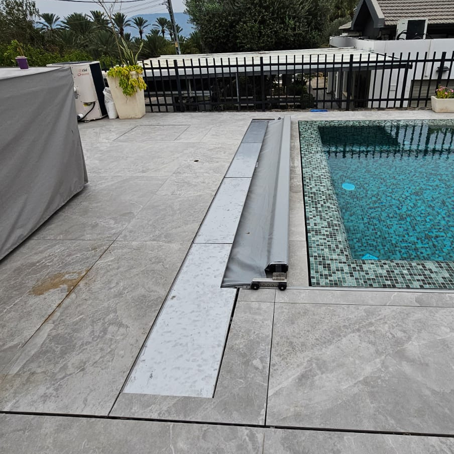 את הכמסה אנו מכינים בהתאמה אישית כך שישתלב בדיוק מושלם למידות האריח המרוצף מסביב לבריכה.